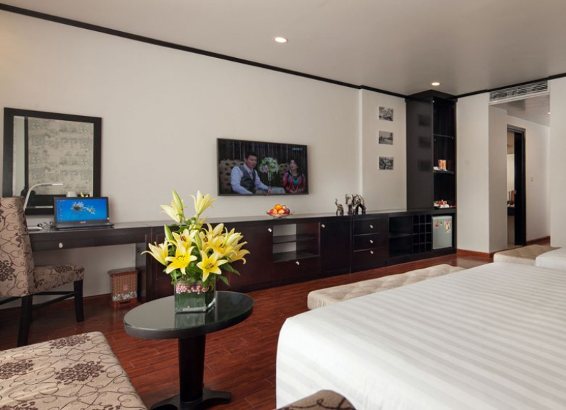Newly open in July 2014, the Boss Legend is the only hotel located in the Old Quarter that has an authentic outdoor swimming pool.  Our services include banquet for parties and meetings/events, as well as a gym, a sauna and other massage services. It is truly a first rate choice for both leisure and business travelers. Guests can enjoy its great location, exceptional service, well-appointed 80 Suites and a Presidential Suite. Our hotel provides convenient access to famous attractions such as Hoan Kiem lake, Ngoc Son Temple, Thang Long Water Puppet theatre as well as the Long Bien historical bridge or Ho Chi Minh Mausoleum.