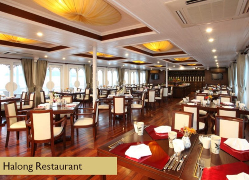 12.00: Enjoy lunch in Ha Long restaurant while The Au Co Cruises slowly passes by beautiful karst towers.