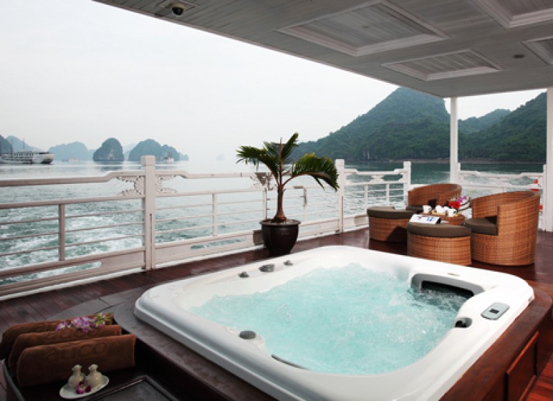 Experience the stunning sceneries of all three of the beautiful bays in the Gulf of Tonkin and explore the amazing islands of Ha Long bay and Lan Ha bay on board The Au Co.Enjoy an invigorating visit a peaceful Lagoon in Lan Ha bay on a traditional rowing boat. While aboard, discover The Au Co’s signature five elements cuisine, re-energize with Tai Chi, unwind on the sundeck or pamper yourself in the Jacuzzi or with a Traditional Vietnamese massage.
