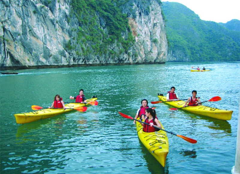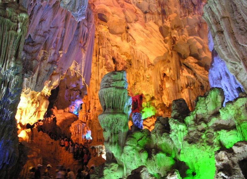 Turn back our big boat, it is wonderful time for you to relax and comfort your-self. Keep your camera on your hand, be ready for so many beautiful photos. Halong bay means "decending dragon bay" because all the islands here (nearly 2000 islands) look like bodies of dragons on the sea water. You will stop at one of the islands for climbing up to a fabulous cave naming Heaven Palace cave, because the scenery inside the cave looks like scenery in the Heaven. You can see so many beautiful stalactites and stalegmites look like dragons, lions, clouds, dolphins...inside this cave.
