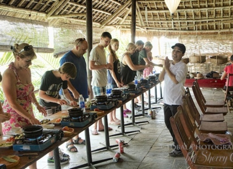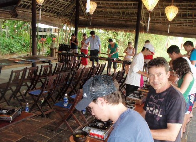 Arriving at Red Bridge Cooking School we have a chance to freshen up before beginning our class. Working together with our Red Bridge Chef we learn the traditional ways of preparing and cooking Vietnamese food from scratch. Using the freshest ingredients and traditional Vietnamese utensils (still in use today) we cook 4 famous dishes, including the national dish ‘Pho’.
