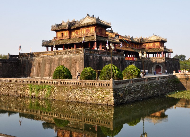 In the afternoon, we return to the center of Hué city. The massive Kinh Thanh Citadel is the most well known and iconic site in Hué. Begun in 1805 by Emperor Gia Long, it is actually a sprawling complex comprised of the Imperial City, several museums, lakes, and lovely gardens, all laid out in a series of concentric circles. We also visit the Forbidden Purple City, originally built in the early 1800s for the personal use of the emperor and staffed by eunuchs who posed no threat to the royal concubines. Nearly destroyed in the Tet Offensive, the ruins today house the Royal Library and the grounds flourish with mimosa plants and vegetable gardens.